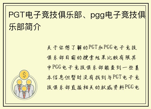 关于“wargame电子竞技俱乐部”,我查阅到的相关信息比较有限,目前只找到一家与此名称相关的俱乐部,但其详细介绍不多。 已知的“石家庄wargame电竞俱乐部” 根据现有的搜索结果,提到的俱乐部情况如下: * 俱乐部名称:石家庄wargame电竞俱乐部。必威...